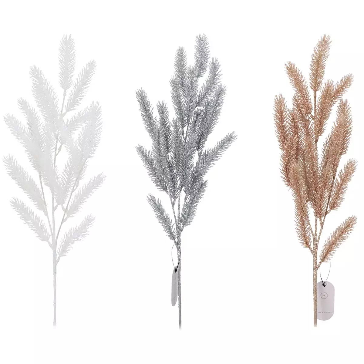 Upeasti kimalteleva glitter-havuoksa tuo näyttävyyttä ja juhlan tuntua kodin sisustukseen, jouluun tai asetelmiin. Kolme tyylikästä väriä: valkoinen, harmaa ja ruskea, sopivat sekä moderniin että perinteiseen joulusisustukseen. Jokainen oksa on 60 cm pitkä ja täynnä kauniisti valoa heijastavaa glitteriä.