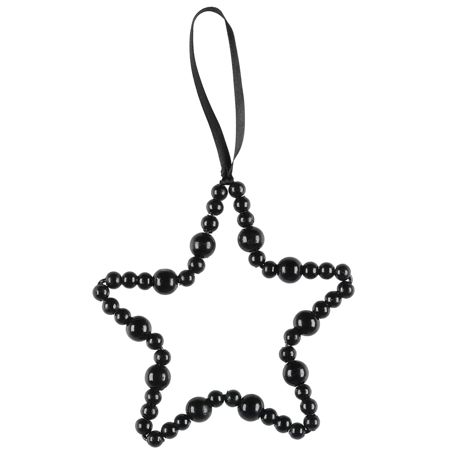 Tyylikäs oksakoriste joulukuuseen. Tähdenmallinen kuusenkoriste on viimeistelty mustan värisillä puuhelmillä. Kaunis koriste sopii erinomaisesti kaikenlaiseen sisustukseen. Oksakoriste on valmistettu männystä sekä metallista.