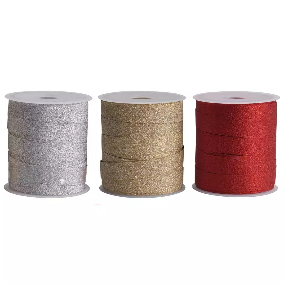 Upea, kimalteleva lahjanauha Glitter on täydellinen valinta esimerkiksi joulun lahjojen paketoimiseen. Värivaihtoehdot: punainen, hopea ja kulta.