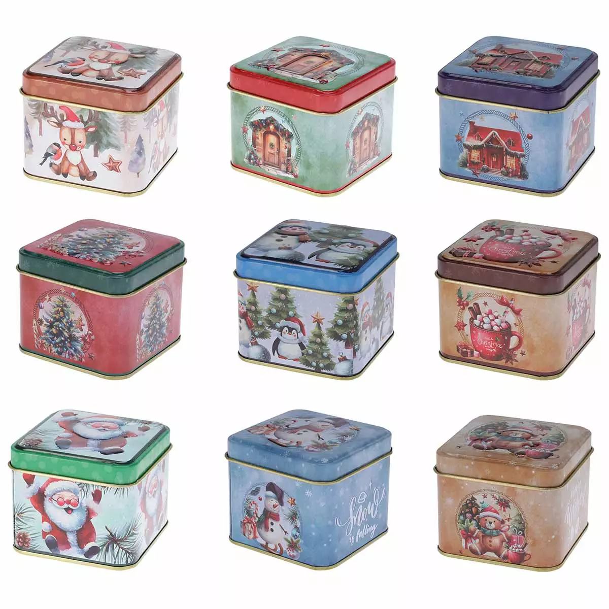 Ihana joulu-teemainen säilytysrasia on mainio lahjaidea tai tunnelmallinen sisustuselementti omaksi iloksi. Söpö rasia sopii erinomaisesti joulukoristeeksi, pikkupurkiksi makeisille sekä käteväksi säilytysrasialle kodin pienille tavaroille. Jouluisella teemalla viimeistelty neliön muotoinen rasia on mattapintainen ja siinä on ihastuttava kuviointi. Suloinen rasia on loistava yksityiskohta niin joulun juhlahetkiin kuin joulun ulkopuolellekin koko talven ajaksi. Säilytysrasia Xmas lajitelmaan kuuluu 12 erilaista rasiaa. Joulurasiat ovat mitoiltaan n. 7x7x6cm.