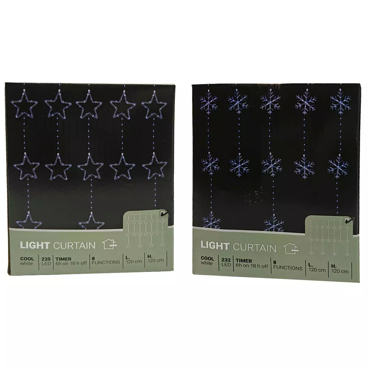 Luo kotiisi taianomaista valon hehkua upealla valoverholla! Valittavanasi on kaksi kaunista mallia - näyttävät tähdet tai lumihiutaleet, jotka tuovat tilaan juhlan ja talven tunnelmaa. Viileän valkoisena kimmeltävä valo kimaltelee kauniisti niin ikkunassa, seinällä kuin parvekkeella.