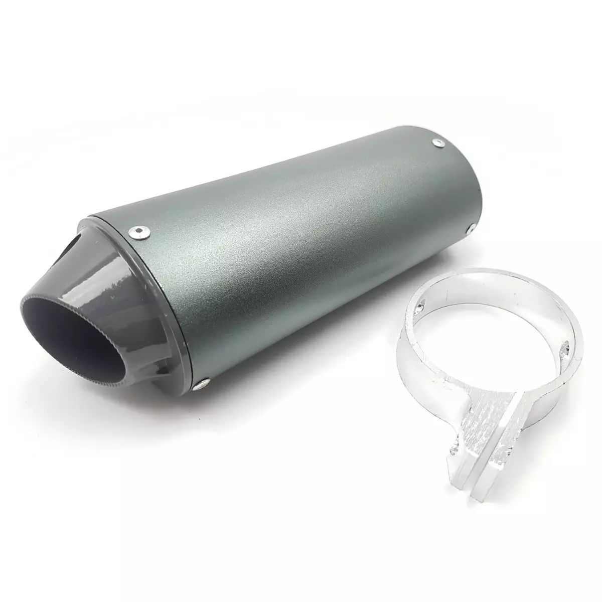 Mattaharmaa pakoputken vaimennin 38mm liitännällä. Yleismallin äänenvaimennin sopii useisiin crossipyöriin ja mönkjiämalleihin vaimentimeksi.