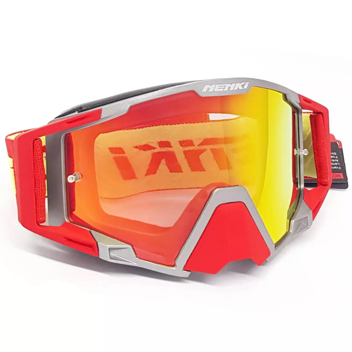 Nenki Raptor Racegrey/Red -crossilasit tarjoavat maksimaalista suorituskykyä ja näyttävyyttä. Peilaava Chrome Iridium -linssi, irrotettava nenäsuoja ja joustava rakenne tekevät ajamisesta turvallisempaa ja tyylikkäämpää – radalla, metsäpoluilla tai kadulla.