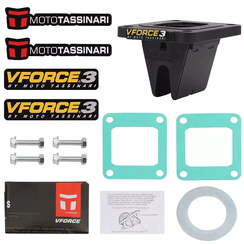 Läppäventtiili V-Force Reed Valve V384A on suorituskykyinen imujärjestelmän päivitys Kawasaki KX80, KX85, KX100 sekä Suzuki RM100 -motocrosspyöriin. VForce 3 -rakenteen ja hiilikuituisten läppälehtien ansiosta moottorin ilmavirtaus, kaasunvaste ja ajettavuus paranevat erityisesti maasto- ja kilpa-ajossa.