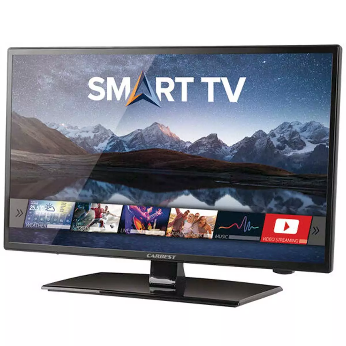 Smart LED TV 18,5" on Android-älytelevisio matkailuautoon ja caravaniin - toimii sekä 230V verkkovirralla että suoraan 12-30V ajoneuvon pistokkeesta ilman erillistä muuntajaa. Kevyt 1,9 kg rakenne ja ohut kotelo mahtuvat ahtaisiinkin tiloihin.