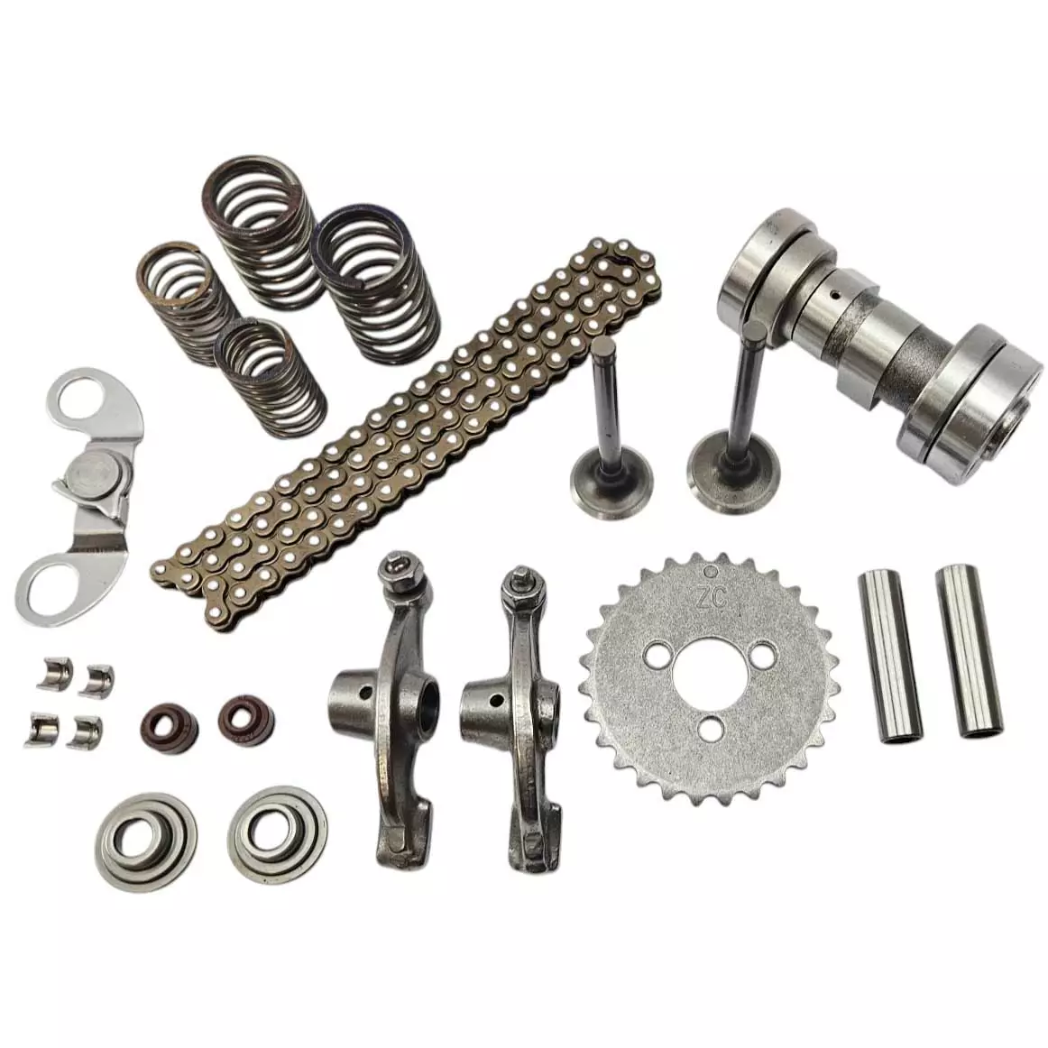 Sylinterikannen korjaussarja crossin, mönkijän ja mopon hondatype moottorin yläpäähän sisältää mm. nokka-akselin, venttiilit, nokkaketjun, venttiilijouset 4kpl, lukituslevyt ja C-holkit, nokkarattaan, keinut yms. 50cc 70cc 90cc 110cc moottorin yläpään korjaussarja soveltuu lähes kaikille hondatype moottoreille. Moottorin korjaussarja on erinomainen hankinta, kun moottorin venttiilit ovat kuluneet, vääntyneet tai nokka-akseli on vaurioitunut.