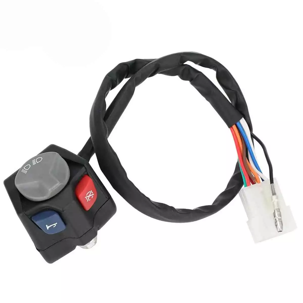Tyylikäs sekä kestävä monitoimikytkin ajovalon, sammuttimen ja äänimerkin napeilla KTM enduro malleihin.