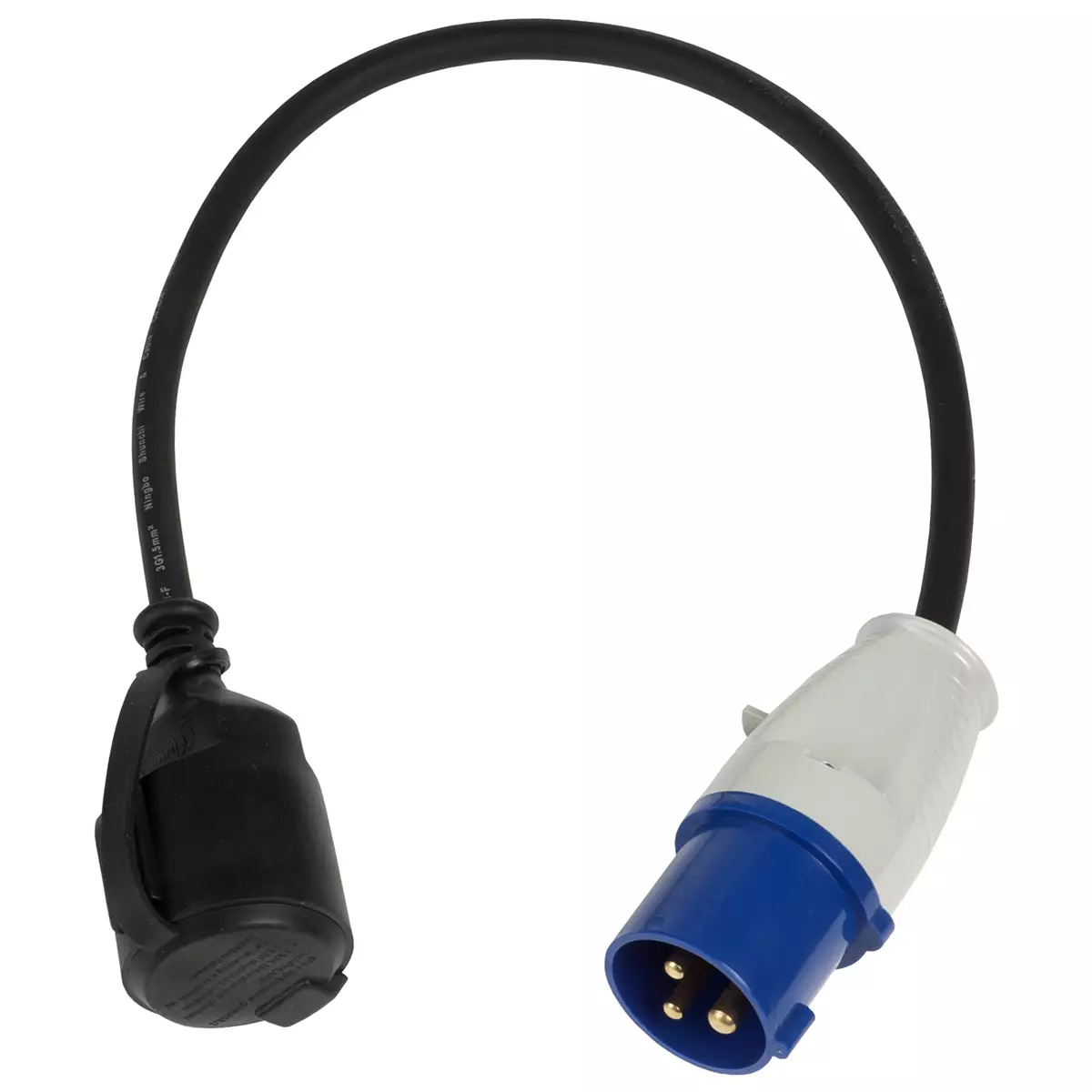 Jatkojohto / adapteri cee-suko asuntovaunu-, asuntoauto- ja veneilijäkäyttöön. Adapterin toisessa päässä on maadoitettu pistorasia ja johdon toisessa päässä 3-napainen pistotulppa. Pituus 0,5 metriä.