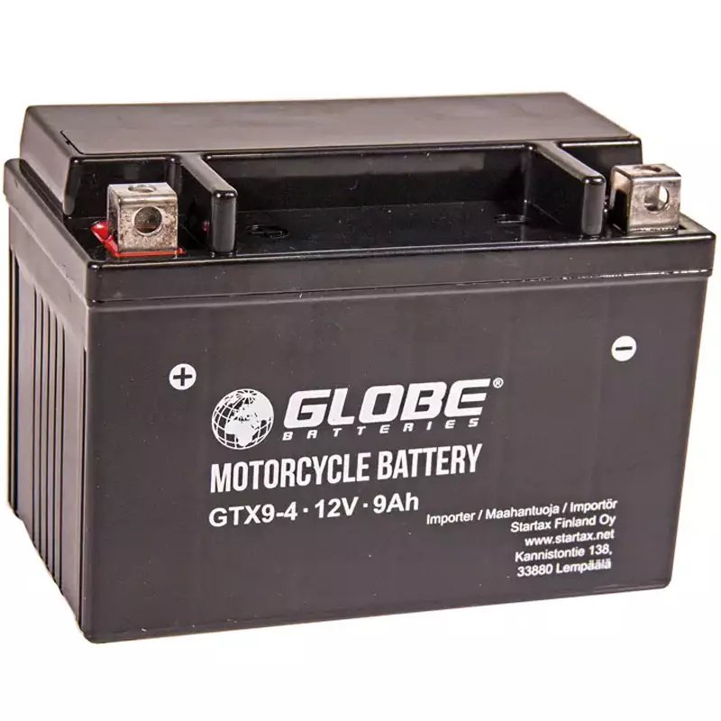 Globe Gel geeliakku 12V 9Ah on tehdasaktivoitu ja heti käyttövalmis - ei happotäyttöä, ei esilatausta, ei säätöä. Kompakti koko 50x86x105mm tekee siitä sopivan ahtaampiin asennuksiin, ja geelitekniikka tarjoaa perinteistä happoakkua paremman käynnistystehon, erinomaisen tärinänkestävyyden ja erittäin matalan itsepurkautumisen.