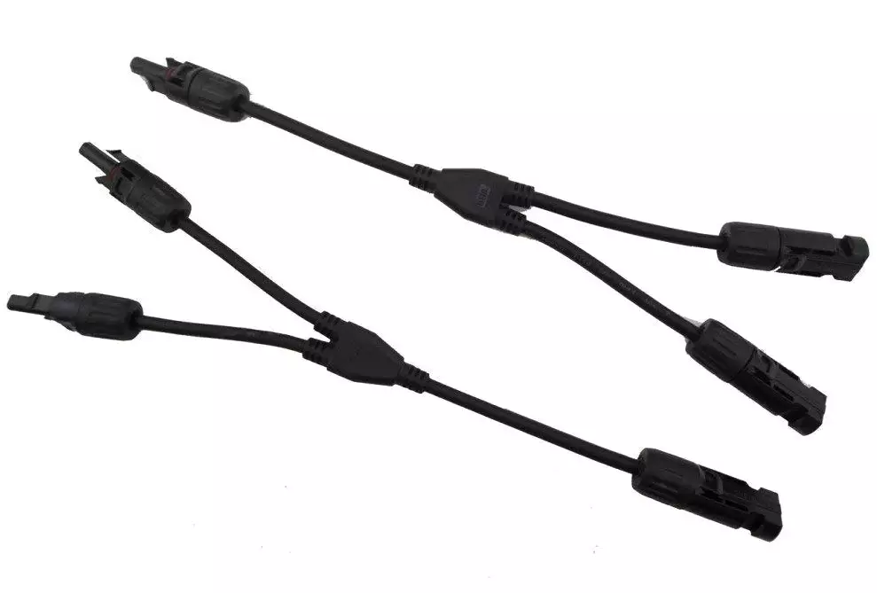 Haaroitusjohto kahden paneelin välille, sisältää 2kpl Y-haara liitinparia. Tämän avulla saa kytkettyä kaksi aurinkopaneelia yhteen johtoon. Aurinkopaneelin kaapelissa on yleisin mc4 pikaliitin joka sopii useimpiin aurinkopaneeleihin, aurinkopaneelien johtoihin sekä useaan invertteriin suoraan. Mc4 pikaliitin on helppokäyttää ja se on laadukkaasti kosteussuojattu.