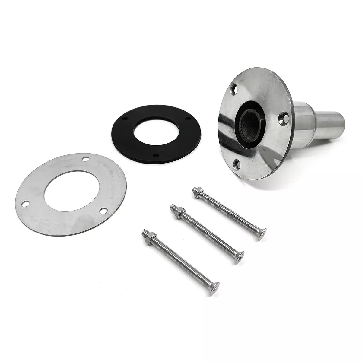 Suora läpivienti asennussarja diesel lämmittimen asentamiseen. Haasteellisia olosuhteita kestävä diesel lämmittimen läpivienti on valmistettu suolavettä kestävästä ruostumattomasta teräksestä, jonka ansiosta läpivientisarja mahdollistaa lämmityslaitteen turvallisen asentamisen esimerkiksi veneeseen. Läpivientisarjassa on suora läpivienti, tiivisteet sekä kiinnitysruuvit erilaisten diesel lämmittimen ulosvientiä varten, joiden letkuputken sisähalkaisija on 24 mm.