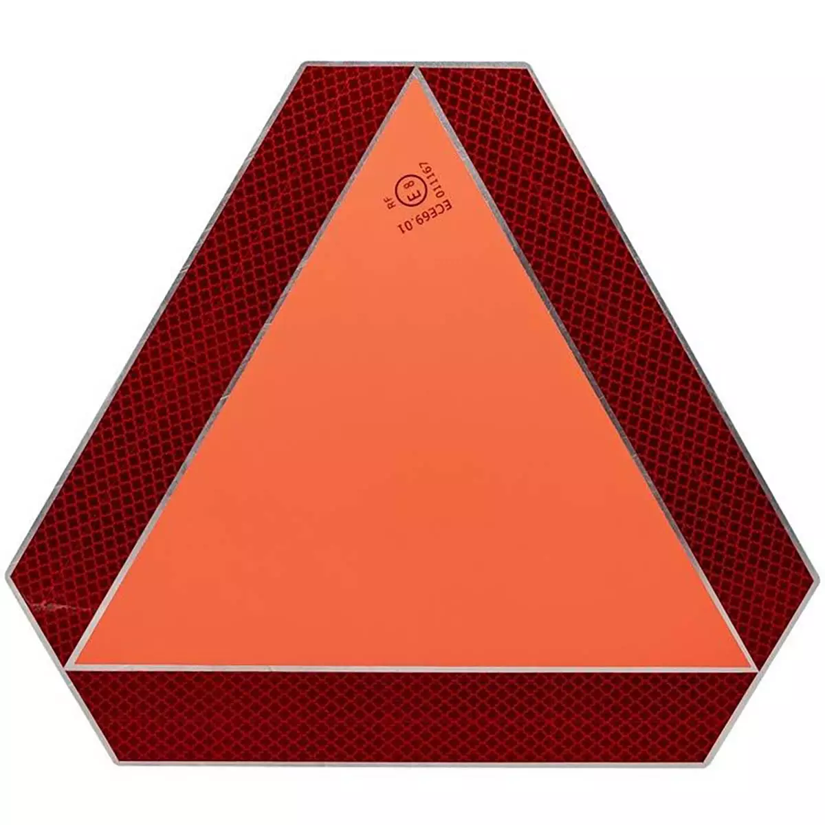 ECE69.01 -hyväksyntä takaa, että varoituskyltti täyttää kaikki tieliikenteessä vaadittavat määräykset. Sopii erinomaisesti mopoautoihin, traktoreihin, työkoneisiin ja perävaunuihin, joissa hitaan kulkunopeuden merkintä on tarpeen.
