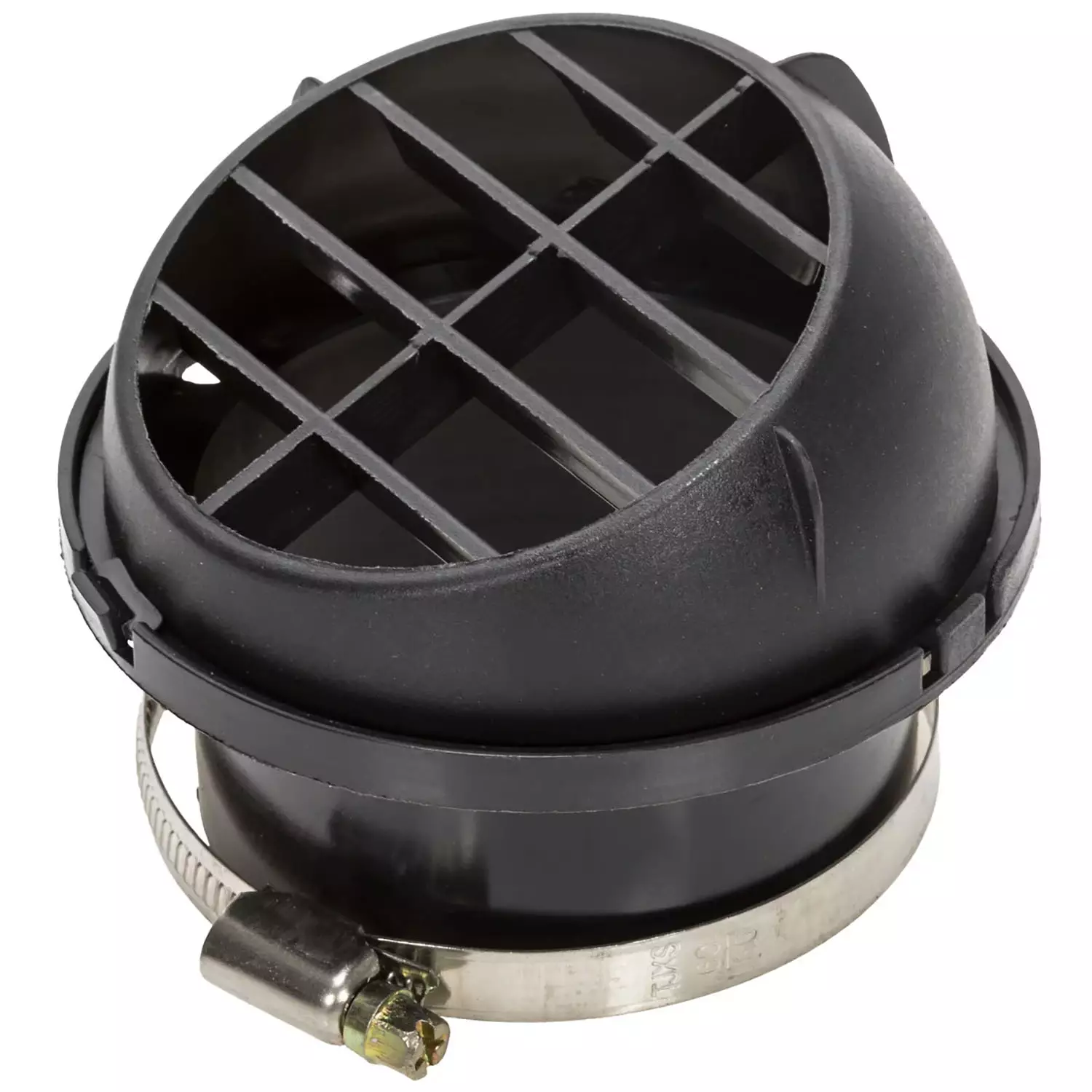 Ilmanohjain lämmitysputkelle. Ilmastointiputken suulake sopii halkaisijaltaan 75 mm letkuun.