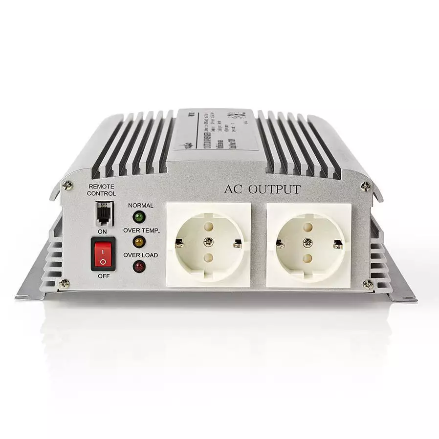 Pitkällä 5 metrin johdolla varustettu kaukosäädin mahdollistaa invertterin turvallisen ja kätevän asentamisen "piiloon". On / off kytkin.