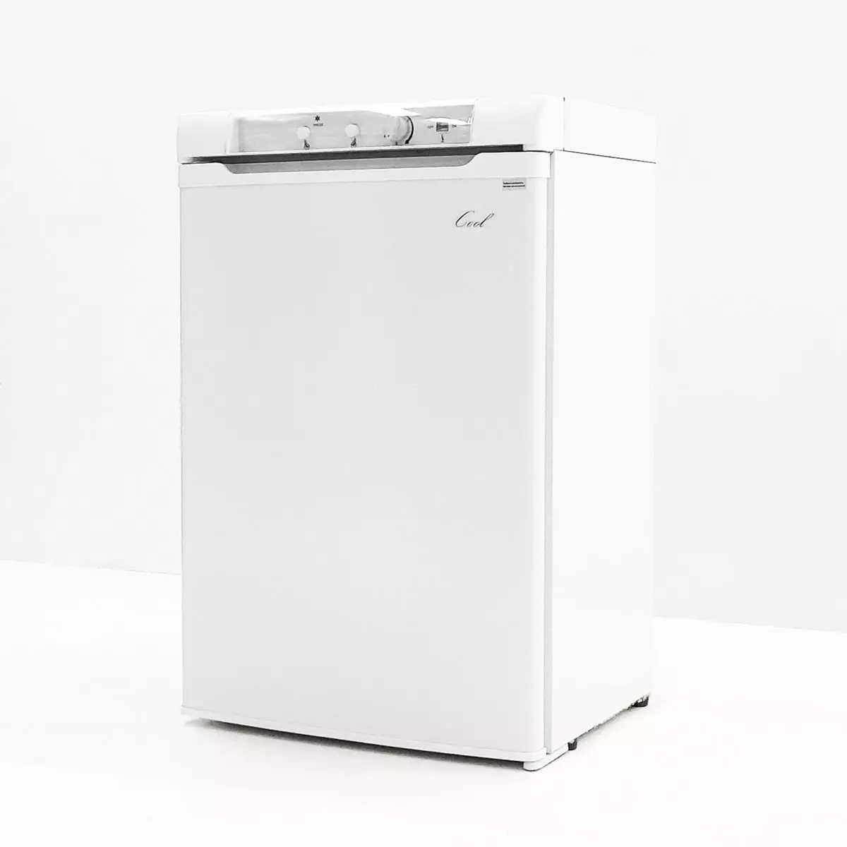 Laitteessa on piezo-sytytys, ja paristokotelo (AAA-paristo) sijaitsee jääkaapin alaosassa – tarkempi sijainti näkyy tuotekuvissa. Termostaattiohjauksen ansiosta lämpötila on helppo säätää sopivaksi. Liekinvarmistin tuo lisäturvaa käytön aikana. Pohjassa on säätötassut, joiden avulla jääkaapin saa tukevasti paikoilleen epätasaisemmallakin alustalla.