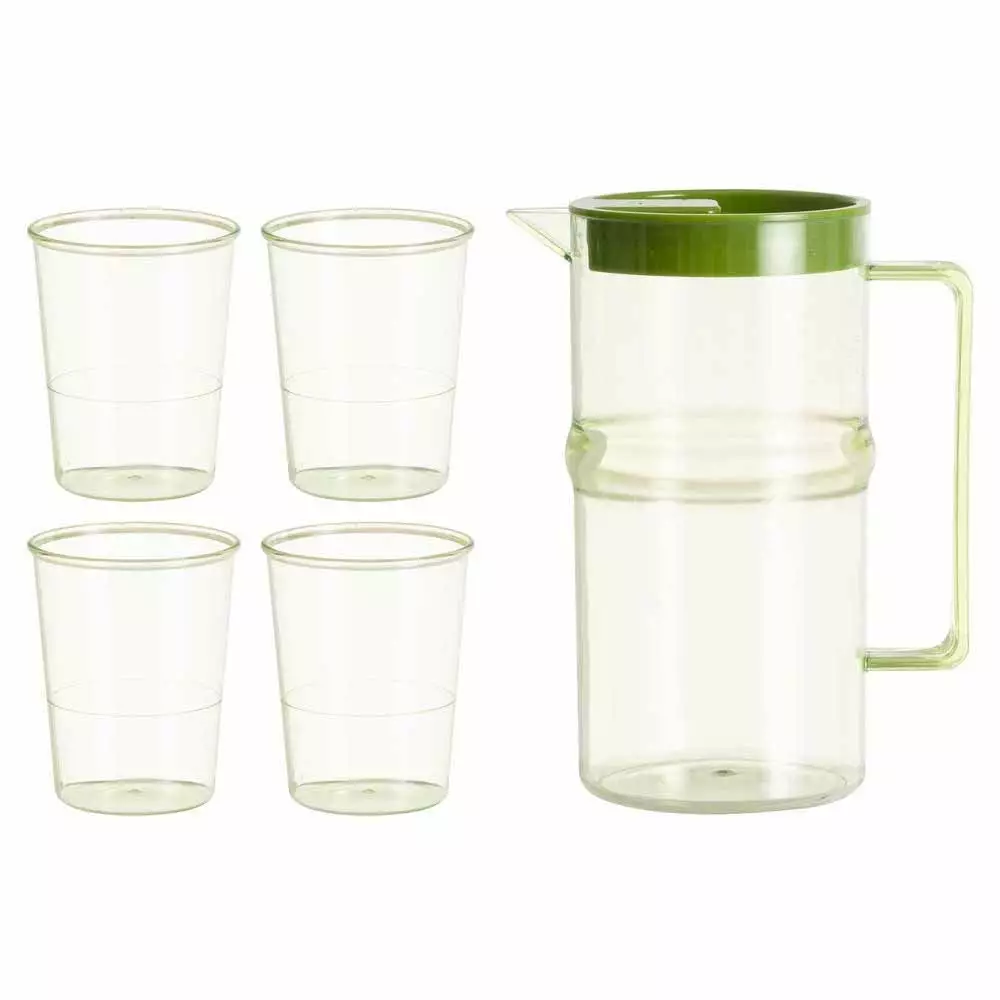 Tyylikäs kannu ja mukisetti sopii monipuoliseen käyttöön kotona, mökillä, asuntoautossa/-vaunussa, piknikillä tai puutarhajuhlissa. Kannu ja 4 mukia -setissä on tilava kannu ja neljä lasista valmistettua mukia. Lasikannun vetoisuus on 1,8 litraa. Kaunis kannu ja mukisetti sopii esimerkiksi veden, mehun ja limsan tarjoiluun. Mukisetti on myös oiva lahjaidea esimerkiksi ensiasunnon saaneelle tai keittiötä sisustavalle henkilölle.