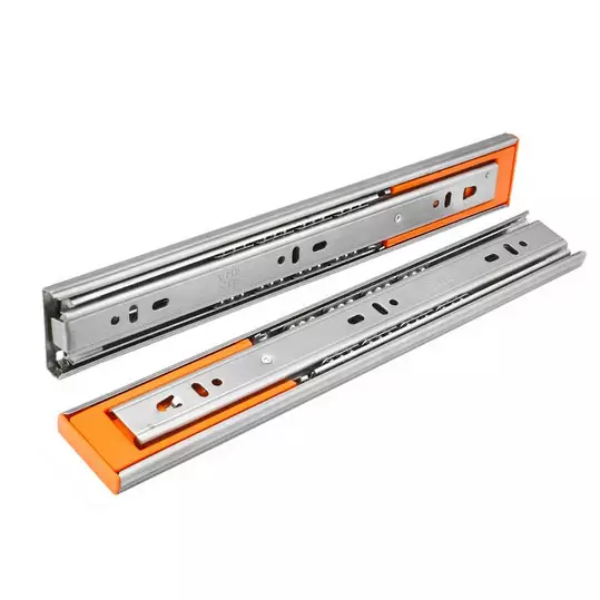 Laatikon kiskot on valmistettu 304 ruostumattomasta teräksestä. Liukulevyn pituus on 55 cm. Kiskon paksuus 10,05 mm ja leveys 43,86 mm. Laakeri kestää jopa 45 kg painon, joten kiskot sopivat erinomaisesti monenlaisiin säilytysratkaisuihin kotitalouksissa ja yrityskäytössä. Tukeva rakenne ja kaksoisjousimekanismi takaa laatikolle tasaisen ja vakaan toiminnan parantaen laatikoiden toimivuutta. Liukukiskot on helppo asentaa laatikkoon itse. Kiskon sivukiinnitysväli on 13 ± 0,2 mm.