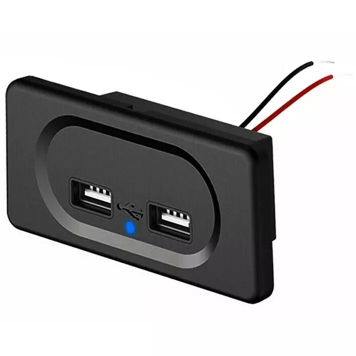 USB-latauspistoke 12-24V 2 x USB kiinnitetään auton, asuntoauton, traktorin, trukin, työkoneen tai veneen paneeliin. Autolaturi on tyylikäs ja toimiva vaihtoehto elektronisten laitteiden nopeaan lataukseen ajon aikana. DC 12-24V toimiva USB-latauspistoke mahdollistaa kahden laitteen latauksen yhtäaikaa. Latauspistokkeessa on kätevä käännettävä suoja, joten latauspistokkeen saa suojattua, kun se ei ole käytössä. Laitetta ladattaessa syttyy sininen led-merkkivalo, joka erottuu hyvin myös hämärässä. USB-latauspistoke on kooltaan