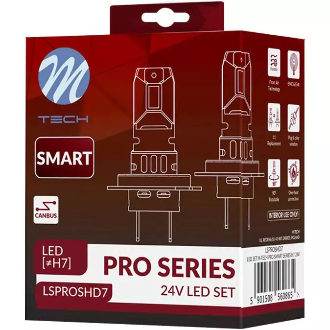 M-Tech PRO SMART H7 24V LED-polttimot tarjoavat kirkkaamman, valkoisemman ja tasaisemman valon kuin perinteiset halogeenit. Uusimman sukupolven CSP 5730 LED-siru tuottaa jopa 4600 lumenin valotehon, mikä parantaa näkyvyyttä ja lisää ajoturvallisuutta.