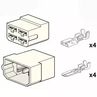 Autoline liitinrasiasarja sisältää sekä 4-napaisen urosliitinrasian että 4-napaisen naarasliitinrasian. Lisäksi pakkauksessa on urosliittimiä 4 kpl ja naarasliittimiä 4 kpl. Molempien laattaliittimien leveys on 6,3 mm.