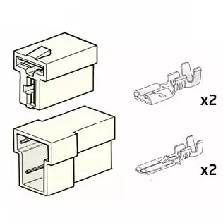 Autoline T-mallinen liitinrasiasarja sisältää sekä 2-napaisen urosliitinrasian että 2-napaisen naarasliitinrasian. Liitinrasioiden lisäksi pakkaukseen sisältyy urosliittimiä 2 kpl ja naarasliittimiä 2 kpl. Molempien laattaliittimien leveys on 6,3 mm.