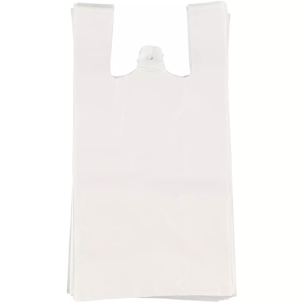 Valkoiset sangalliset muovipussit riittoisassa 500kpl:n tukkupakkauksessa! Roskapussi, kauppakassi tai tavaroiden säilytykseen ja kuljetukseen.