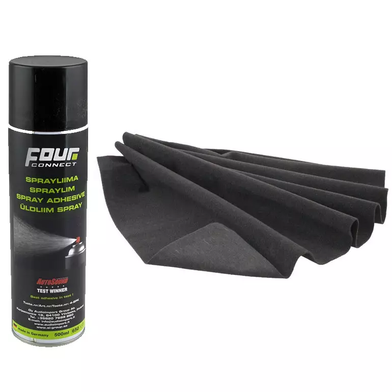 Tilaa verhoilusetti nyt – musta verhoiluhuopa + testivoittaja FOUR Connect -liima yhdessä paketissa.