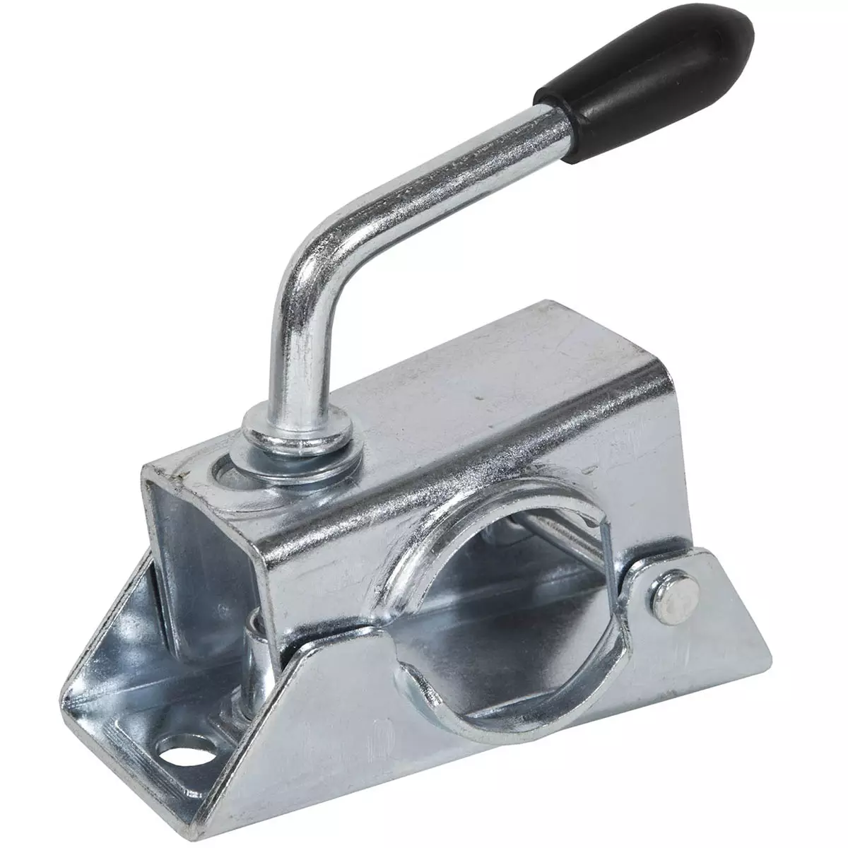 Yleismallin tukijalankiinnike trailerin ja peräkärryn nokkapyörän tukevaan asentamiseen. Vahva sinkitty nokkapyörän kiinnike soveltuu sellaisten nokkapyörien kiinnittämiseen, joiden runkoputken halkaisija on 48 mm. Nokkapyörän kiinnikkeessä on pinnoitettu käyttövipu, jonka ansiosta vivusta saadaan hyvä ote kiinnikkeen avaamista sekä sulkemista varten. Traileriin tai peräkärryyn kiinnitettävässä tukijalkakiinnikkeessä on 2-piste kiinnitys kiinnikkeen paikoilleen asentamista varten.