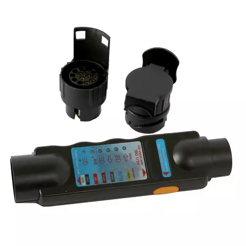 Tällä testauslaitteella tarkistat kätevästi perävaunun ja peräkärryn valojen toimivuuden! Testauslaitteen mukana tulee 7-13 sekä 13-7 -muunnosliittimet, jolloin näet kätevästi toimivatko kaikki takavalot esimerkiksi asuntovaunussa ja peräkärryssä.