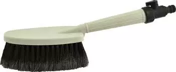 Pehmeäharjaksinen auton ja veneen pesuharja hanaliittimellä. Näin saat veden esimerkiksi puutarhaletkun avulla virtaamaan suoraan harjasta pestävälle pinnalle.