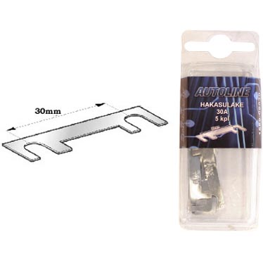 Autoline hakasulakkeet 5 kpl:n pakkauksessa. Hakasulakkeiden koko on 100 A ja niiden kiinnitysväli on 30 mm. Toimitetaan blisterpakkauksessa.