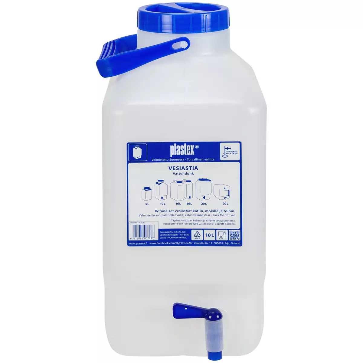 Laadukas kotimainen elintarvikekelpoisesta muovista valmistettu hanallinen vesiastia. Astia on helppo pestä ison suuaukon ansiosta ja helppo kuljettaa kantokahvasta. Sopii veden lisäksi hyvin mm. myös mehulle, kotiviinille, kotikaljalle.