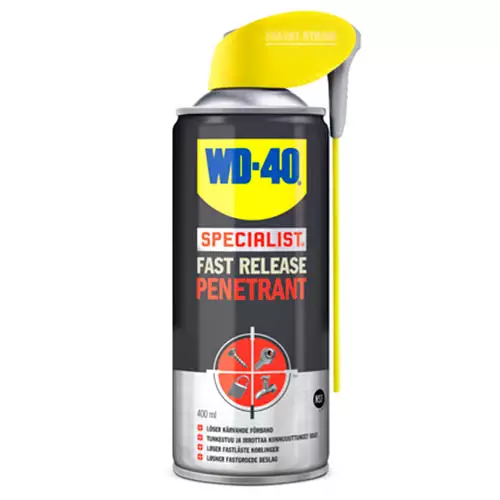Nopeasti vaikuttava WD-40 Penetrant irrotusöljy helpottaa juuttuneiden ja ruostuneiden kiinnikkeiden, mekanismien sekä osien irrottamista. Ruostuneille osille soveltuva ruosteenirroitin tunkeutuu nopeasti vaikeapääsyisille alueille ja helpottaa kappaleiden sekä osien irrottamista haasteellisesta ruosteesta huolimatta. Monitoimiöljyllä on vettä hylkivä koostumus, joka poistaa pinnoilta kevyttä ruostetta sekä ehkäisee korroosiota. Ruostuneiden ja jumittuneiden kappaleiden irrottamiseen soveltuvassa öljyssä on kätevä Smart Straw -korkki, jonka pillijärjestelmä mahdollistaa leveän ja tarkan ruiskutuksen.