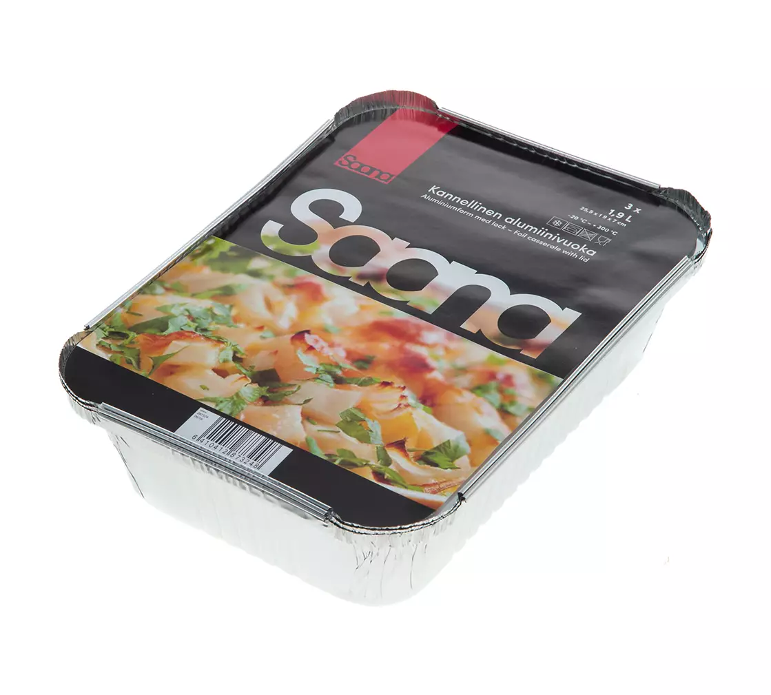 Kertakäyttöinen vuoka pahvikannella. Alumiinivuoka paistamiseen, pakastukseen, tarjoiluun ja säilytykseen.