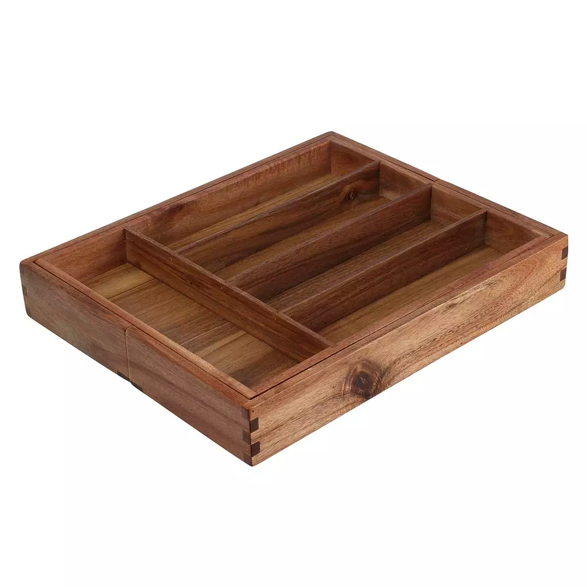 Akasiapuinen aterinlaatikko tuo käytännöllisyyden ja tyylikkyyden keittiöösi. Korkealaatuinen aterinlokero on valmistettu 100 % FSC-sertifioidusta akasiapuusta, joka tuo luonnollista lämpöä ja ajattomuutta keittiötilaan. Aterinlokeron luonnollinen puupinta yhdistää tyylikkyyden ja kestävyyden ainutlaatuisella tavalla.