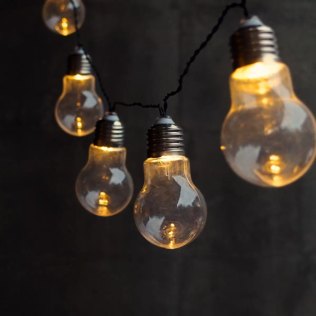 Ulkokäyttöön soveltuva kaunis aurinkokennolla toimiva koristevalosarja. Hehkulampun muotoisilla kuvuilla viimeistelty aurinkokennovalaisin luo upeaa tunnelmaa ja valaistusta erilaisiin ulkotiloihin, kuten puutarhaan, terassille, piharakennuksien seinustoille, ulkosaunaan, puutarhakatokseen ja laiturille. Solar valosarjassa on kymmenen upeaa hehkulamppua muistuttavaa kupua LED-valoilla. Kauniisti valaiseva led-valosarja sopii puutarhan koristeluun, ulkotilojen valaisuun ja upeiden asetelmien viimeistelyyn.