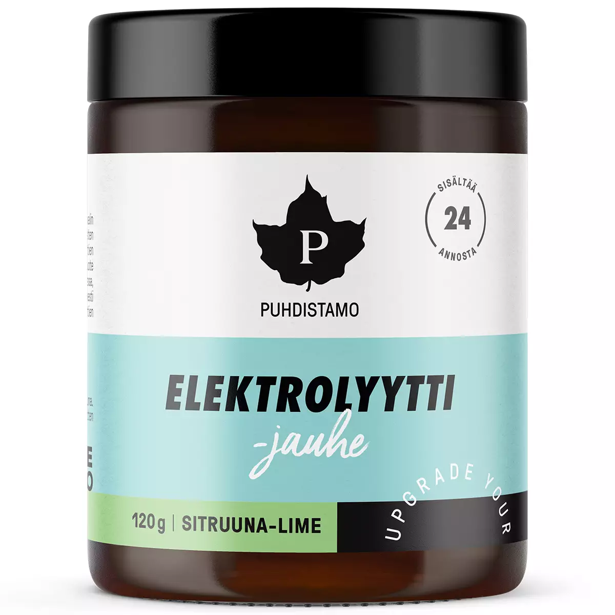 Puhdistamo KETO-yhteensopiva elektrolyyttijauhe auttaa pitämään elimistön elektrolyyttien tasapainon yllä kaikissa olosuhteissa. Puhdistamo sitruuna-lime elektrolyyttijauhe sisältää keskeisimpien elektrolyyttien lisäksi guerande merisuolaa, C-vitamiinia sekä OptiMSM:ää, orgaanista rikkiä. Elektrolyyttijauhe ei sisällä sokereita.