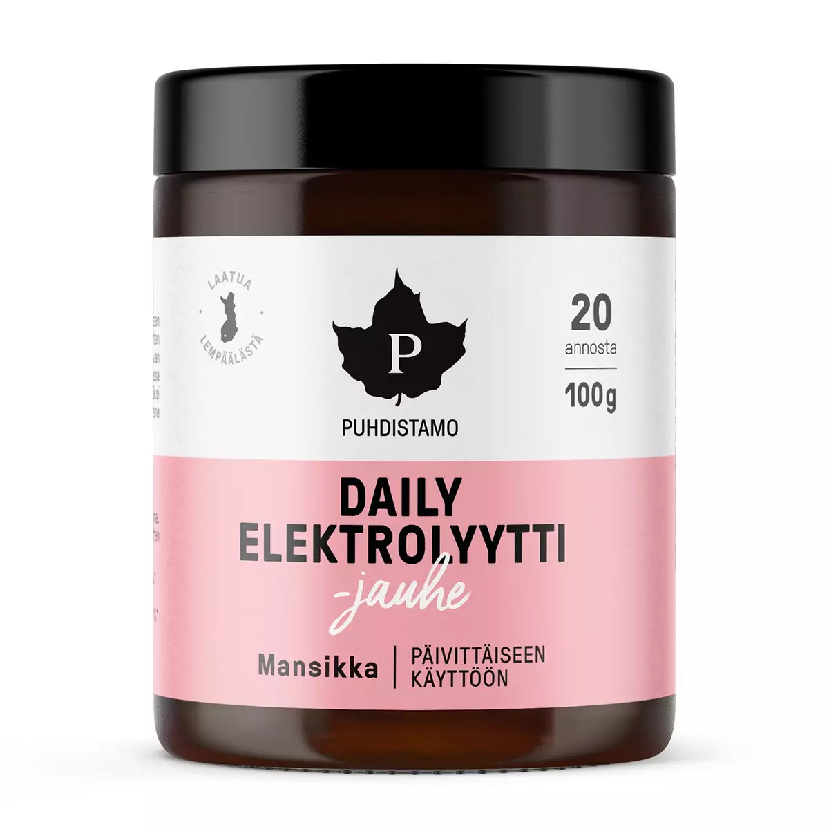 Raikas ja hyvänmakuinen Puhdistamon Daily elektrolyyttijauhe on suunniteltu tukemaan kehon nestetasapainoa. Jauhe sisältää laadukasta Guérande-merisuolaa, kaliumia, magnesiumia ja C-vitamiinia, jotka yhdessä auttavat ylläpitämään optimaalista nestetasapainoa. Daily elektrolyyttijauhe on loistava valinta esimerkiksi treeni- ja hikoilupäiville sekä muuhun arkiseen nesteytykseen.