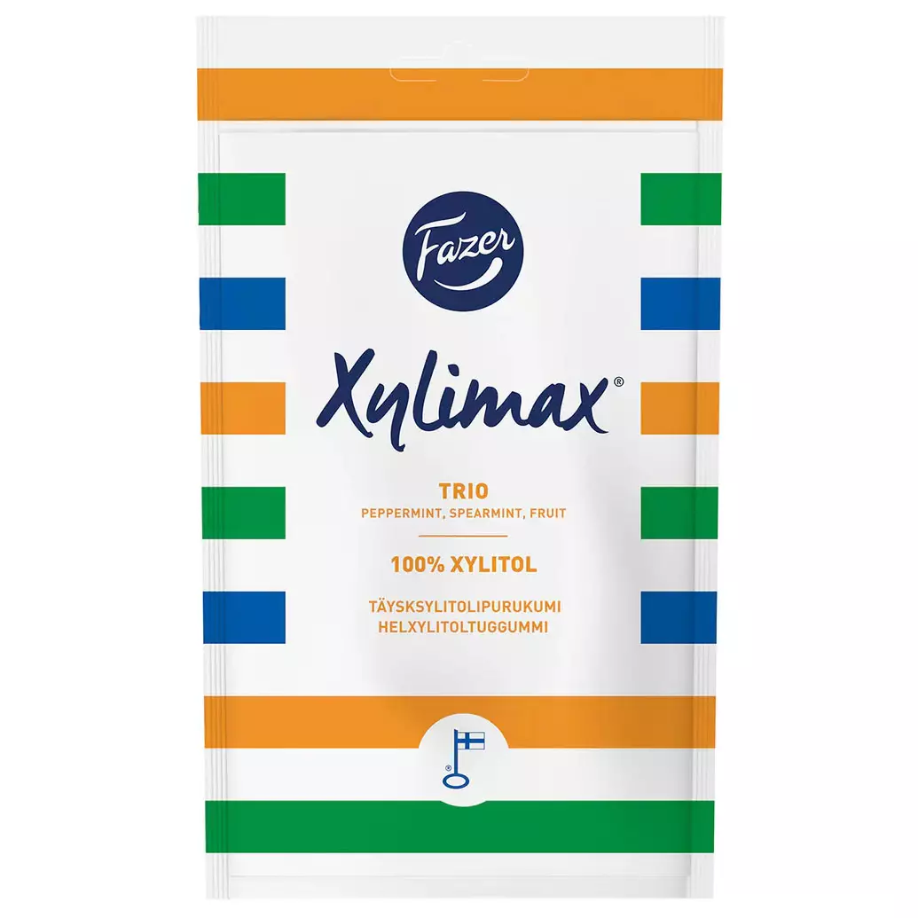 Xylimax -täysxylitolipurukumit tuovat raikkautta päiviisi. Xylimax Trio -purkkapussi sisältää kolmea eri makua: piparminttu, spearmint ja hedelmä. Suosikkimaut samassa pussissa, jotta sinun ei tarvitse valita yhtä vaan voit valita kaikki kolme. Kolmea eri makua sisältävä purkkapussi sopii koko perheelle ja jokaiselle löytyy oma suosikkimaku.