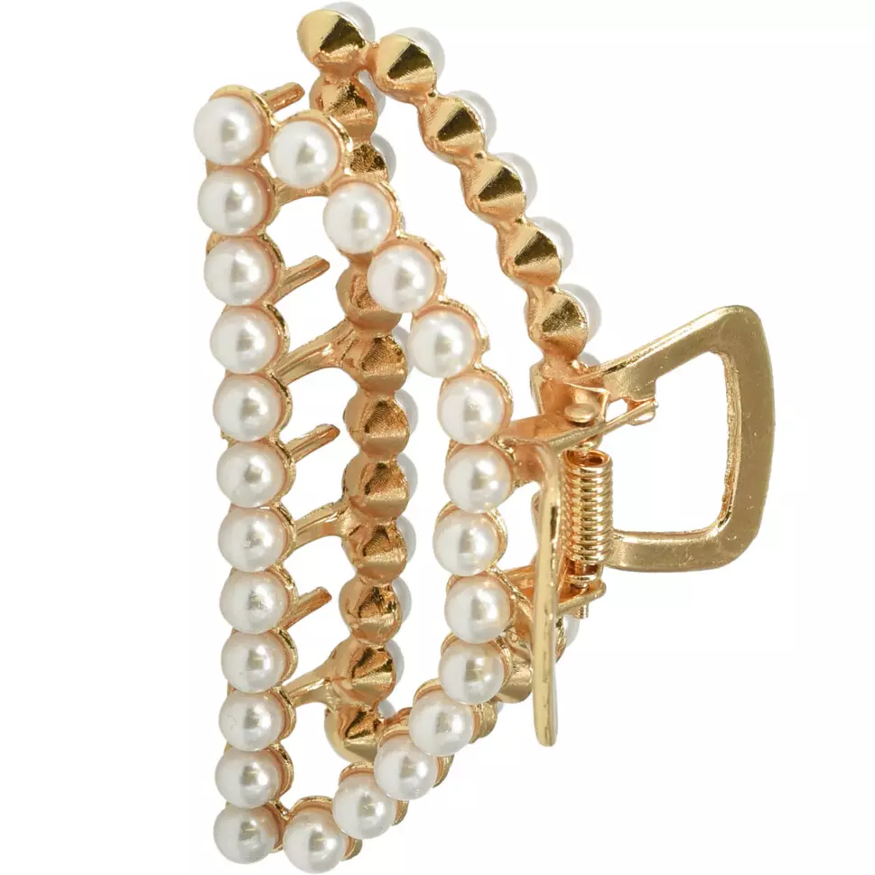 Kaunis kultainen tai hopeinen hiusklipsi valkoisilla helmikoristeilla toimii upeana yksityiskohtana hiuksissa ja kampauksissa. Nappaa hiukset kiinni tähän kauniiseen hiusklipsiin ja rento arkikampaus on valmis. Sopii erinomaisesti molempiin arki- ja juhlahetkiin.
