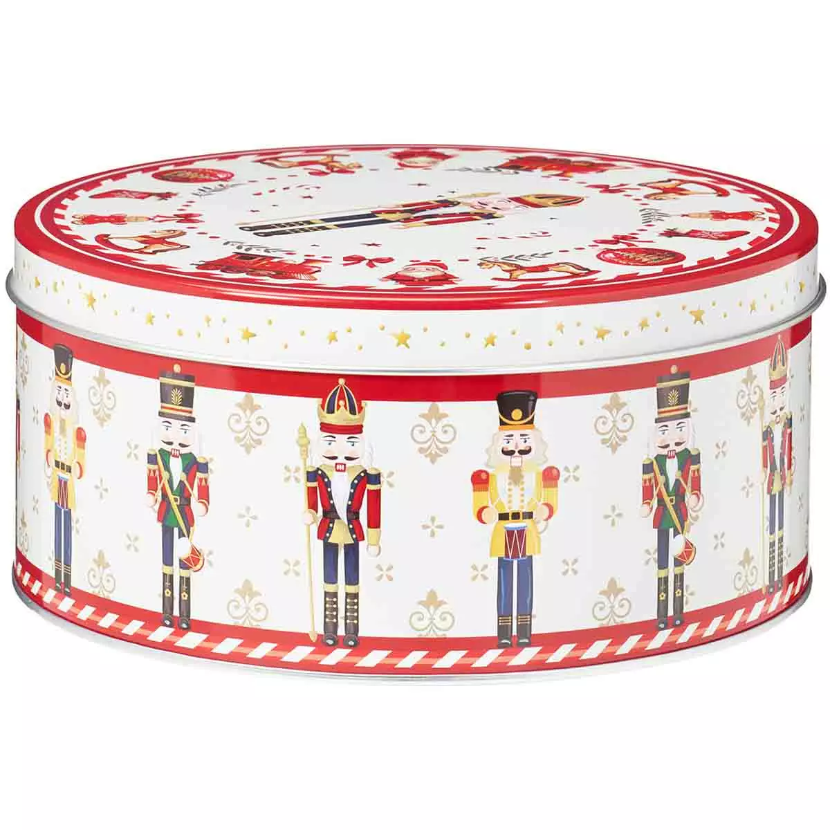 Metallinen peltirasia yhdistää käytännöllisyyden ja juhlatunnelman.Pyöreä muoto ja kestävä rakenne tekevät siitä pitkäikäisen säilytysratkaisun, joka sopii yhtä hyvin keittiöön, olohuoneeseen kuin lahjahyllyllekin.