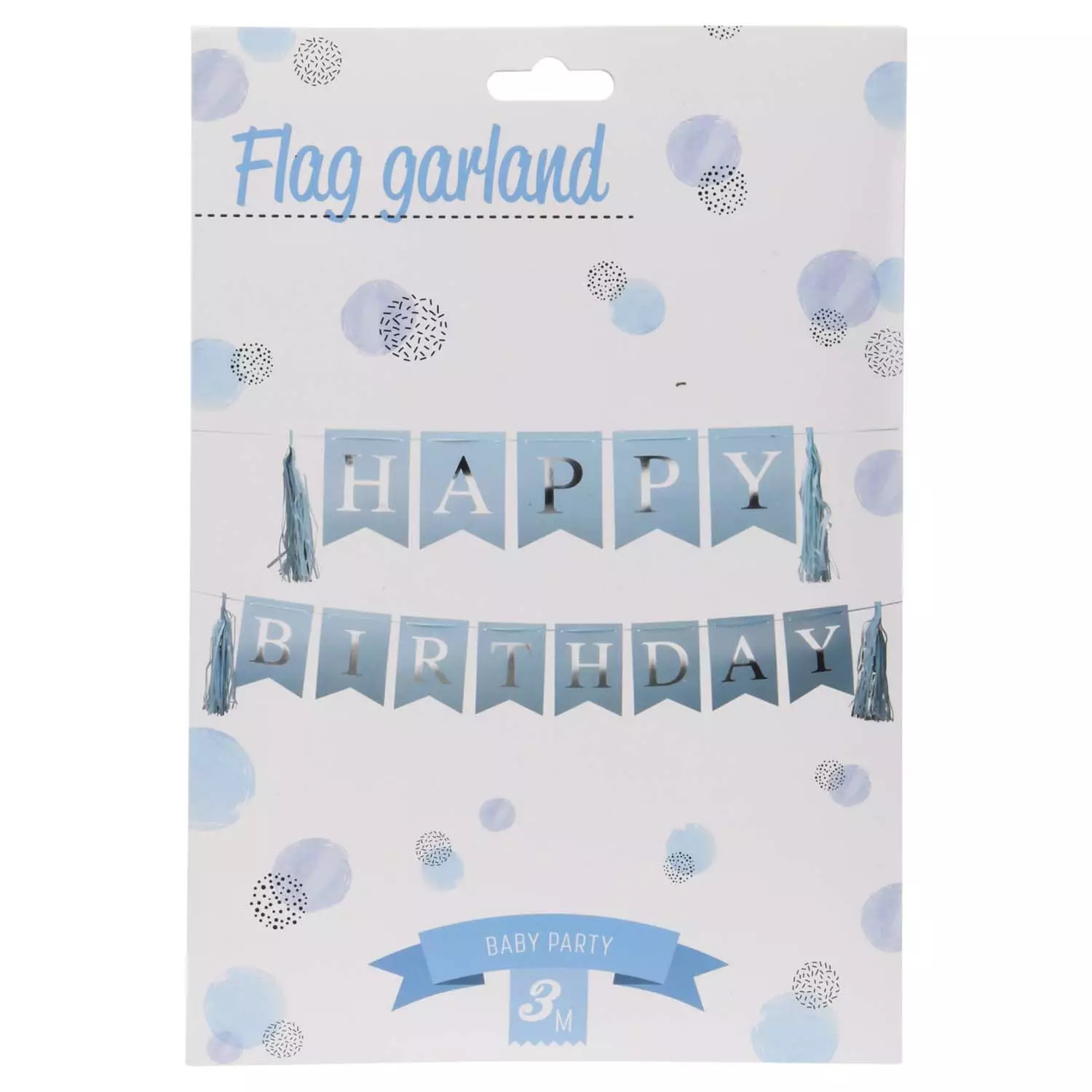 3 metrinen juhlaviiri Happy Birthday on ihana ja juhlava koriste syntymäpiville. Happy Birthday viirillä voit toivottaa onnellista syntymäpivää niin perheen, ystävien kuin työkavereidenkin kanssa. Erilaisilla juhlaväreillä ja -rekvisiitoilla luot ainutlaatuista ja tunnelmallista syntymäpiväjuhlien koristelua.