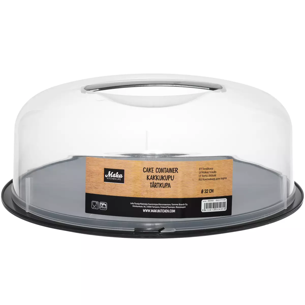 Pyöreä kakkukupu on monikäyttöinen valinta arkeen ja juhlaan. Kakkukupu on halkaisijaltaan 31,7 cm, joten kakkukupua voi käyttää niin täytekakuille, juustokakuille kuin suolaisille piirakoillekin. Tiiviin kannen ja kantokahvan ansiosta kakkukuvussa on helppo säilyttää leivonnaisia jääkaapissa.