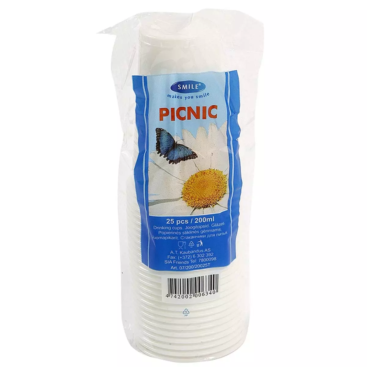 - Kertakäyttömuki Smile 200ml valk. 600kpl