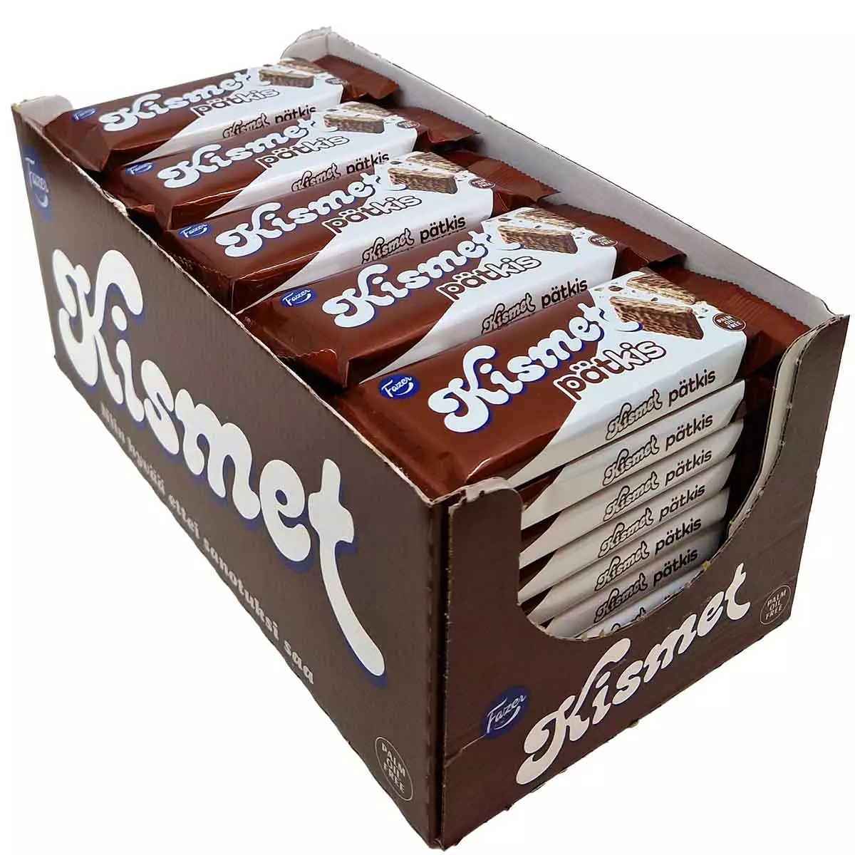 Kismet Pätkis yhdistää kaksi Fazerin klassikkoa: rapean Kismet-suklaavohvelin ja rakastetun Pätkiksen minttutryffelitäytteen. Kätevä laatikkopakkaus sisältää 45 kpl 41 g suklaapatukoita, jotka sopivat täydellisesti arjen herkkuhetkiin, juhliin ja jaettavaksi.