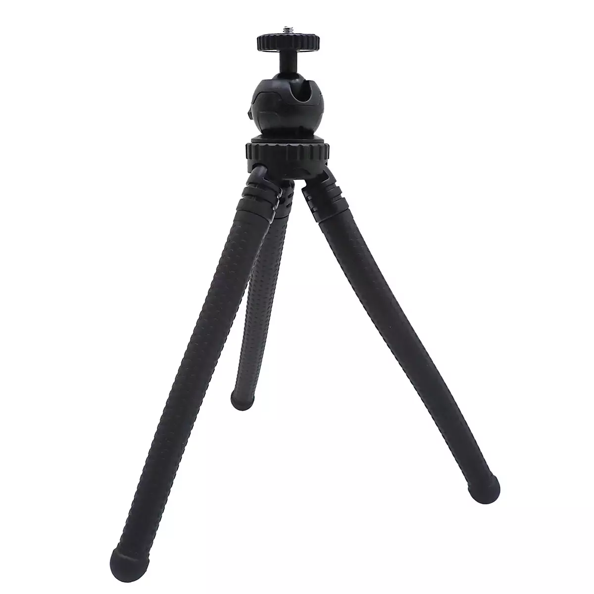Monikäyttöinen jalusta, jonka joustavat jalat mahdollistavat kameran tukevan asettamisen erilaisille alustoille sekä kiinnittämisen oksiin tai kaiteisiin, mikä avaa mahdollisuuksia mielenkiintoisiin kuvauskulmiin. Jalustassa on 360 asteen kääntyvä kuulapää ja lukitustappi, joiden ansiosta voit säätää kamerakulmaa tarpeidesi mukaan. Jalustassa on 1/4” ruuvi, johon voit kiinnittää erilaisia kameroita tai adapterilla puhelimen.