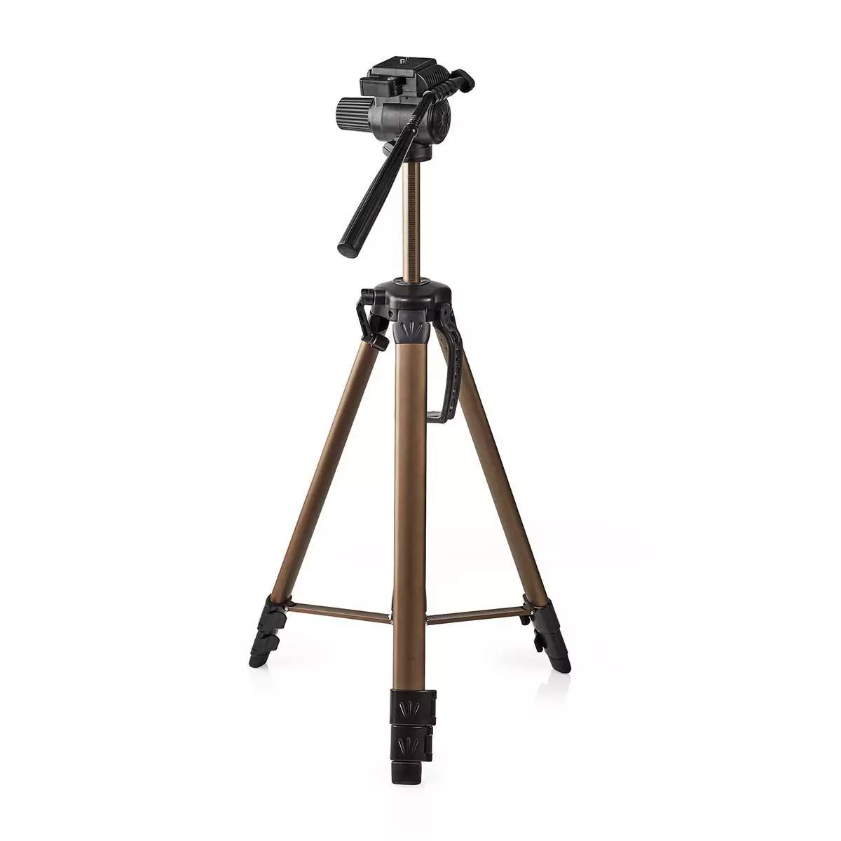 Kevyt ja vakaasti seisova kameran kolmijalka. Korkeus säädettävissä 64-161 cm.