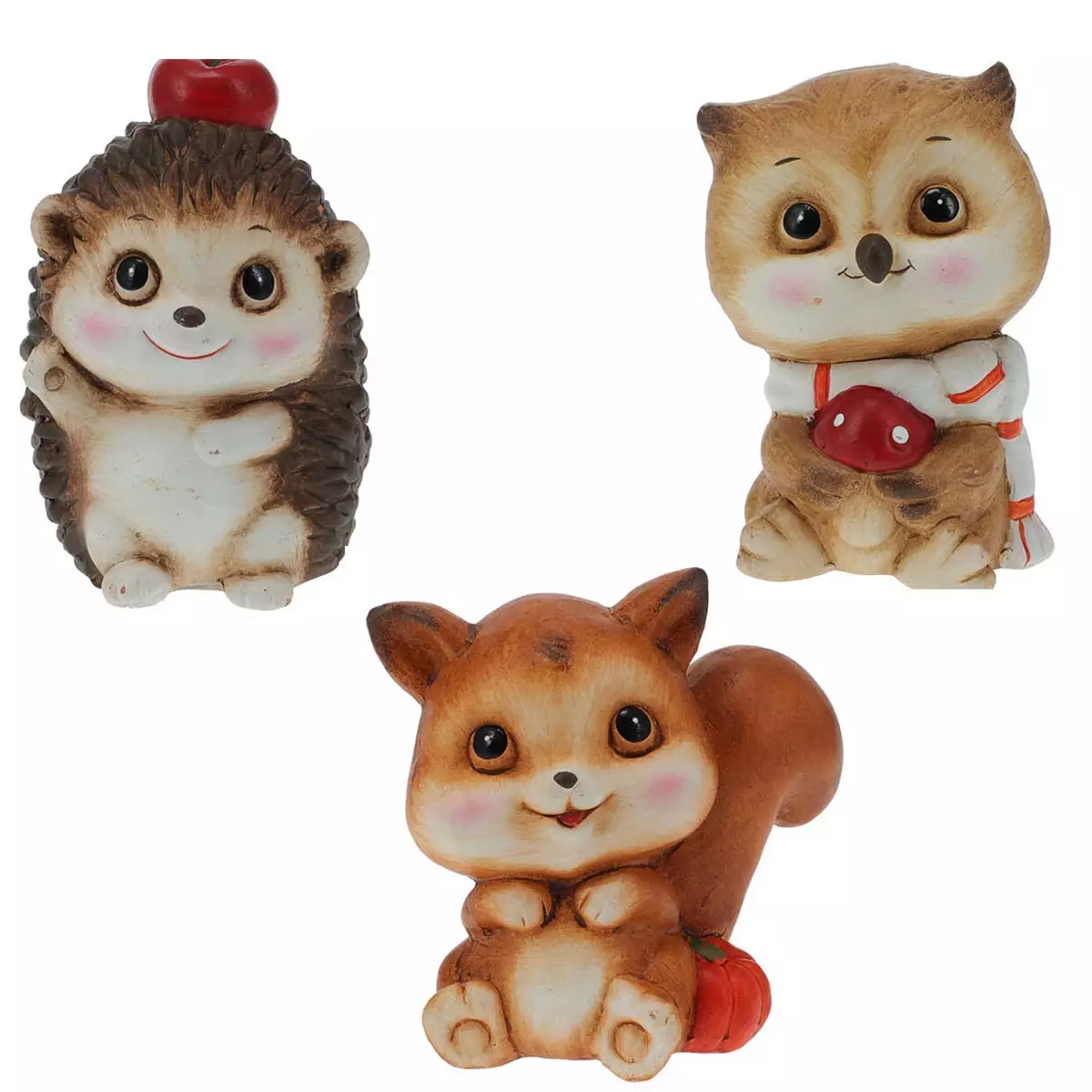 Syksyn eläimet -koristelajitelma sisältää kolme ihastuttavaa vaihtoehtoa: siili, orava ja pöllö. Jokainen hahmo on yksityiskohtaisesti viimeistelty ja maalattu lämpimissä syyssävyissä, mikä tekee niistä täydellisen lisän kausisisustukseen.