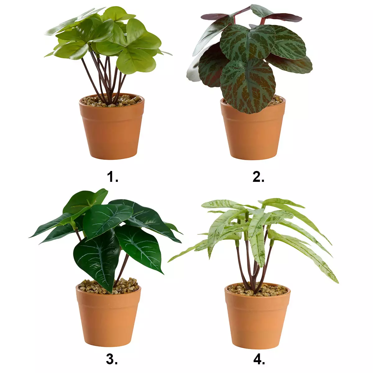 - Lajitelmaan kuuluu 4 erilaista tekokasvia, ilmoita haluamasi malli ostoskorin lisätietokentässä