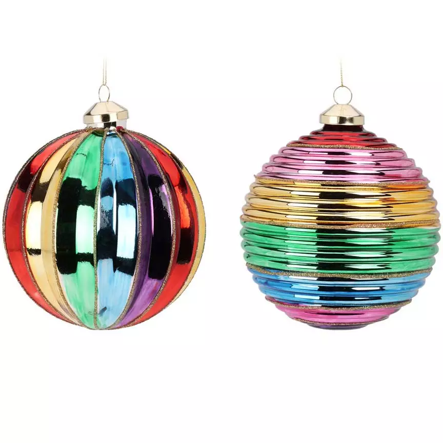 Värikäs, suuri Sateenkaari kuusenpallo on ihastuttava lisä sisustukseen. Kaunis raitakuvioitu joulupallo on upea yksityiskohta joulukuusen koristeeksi sekä erilaisiin jouluisiin asetelmiin. Värikkäällä kuusenkoristeella rakennat helposti näyttävän ja iloisen joulutunnelman kotiisi. Värikkäät, eri sävyiset raitakuviot tuovat kauniin lisän joulukuusen koristeluun.